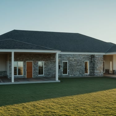 Innovative large single-story, dual island kitchen, two covered patios, and RV garage capability. Multiple roof designs available & configurable exterior finishes.