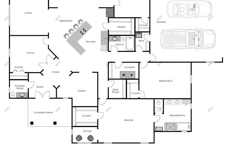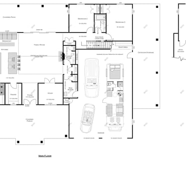 Beautiful single-story, large home with contemporary interior angles & stately columned foyer. Includes a master sitting area. a safe room, and an RV garage. Multiple roof designs available & configurable exterior finishes.